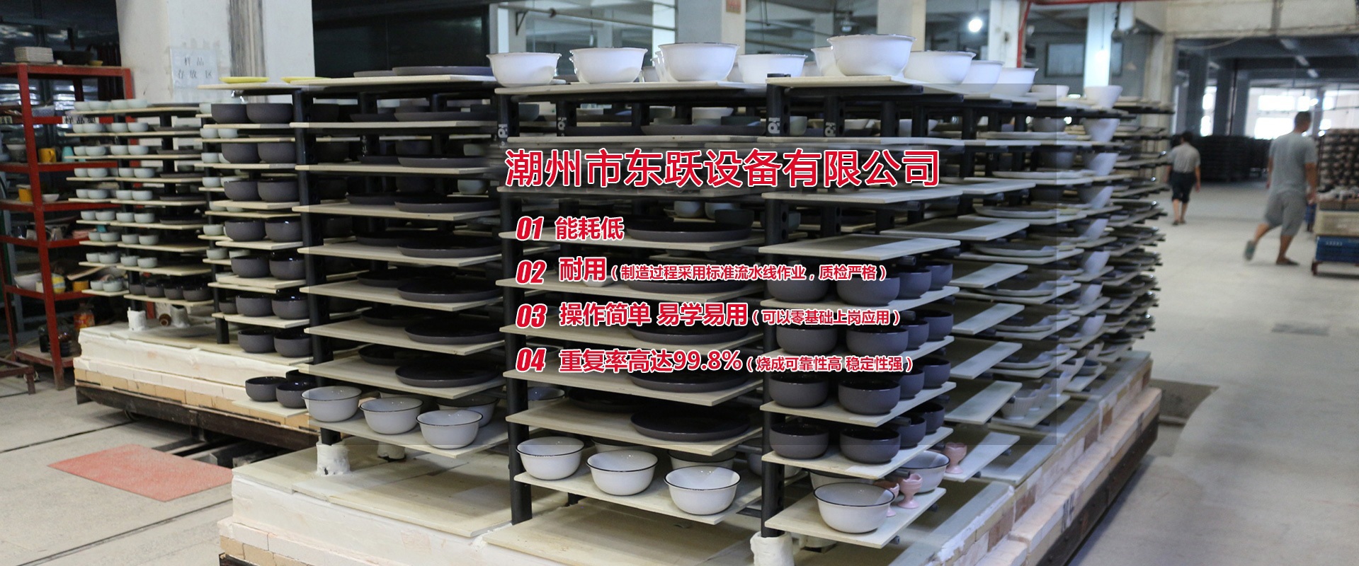 潮州市東躍設(shè)備有限公司,創(chuàng)立于公元2011年5月14日,經(jīng)過進(jìn)十年的努力,已發(fā)展成一家擁有集研發(fā)、設(shè)計、加工制造、安裝、調(diào)試與售后一體化的窯爐公司。設(shè)計理念:1.能耗低2.耐用(制造過程采用標(biāo)準(zhǔn)流水線作業(yè),質(zhì)檢嚴(yán)格)3.操作簡單 易學(xué)易用(可以零基礎(chǔ)上崗應(yīng)用)4.重復(fù)率高達(dá)99.8%(燒成可靠性高 穩(wěn)定性強)